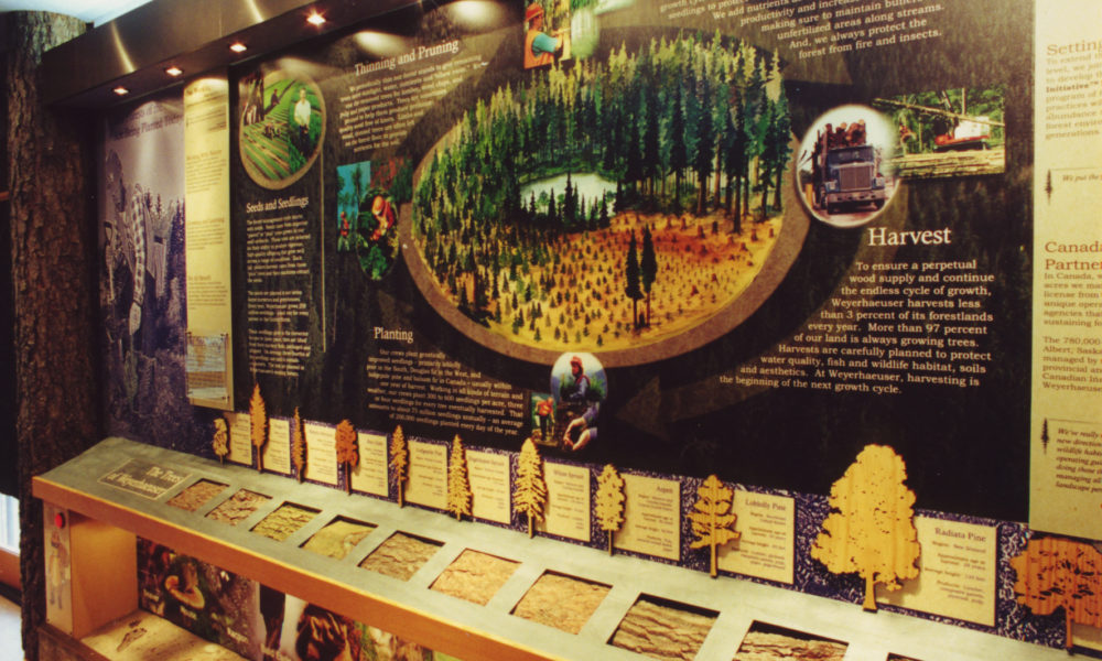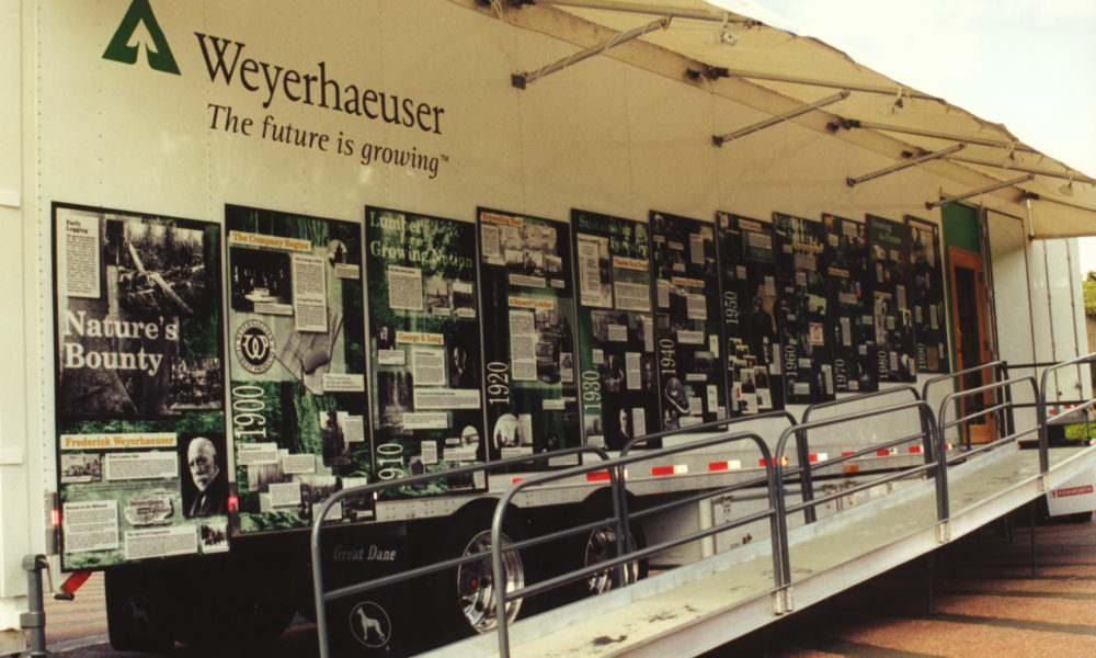 Weyerhaueser celebrated its 75th Anniversary with a truck exhibit that traveled to its offices and plants across the United States. Employees in each location hosted city-wide events to share the company’s rich history with their local communities. The 53′ truck included interior and exterior exhibits highlighted the company’s past, it’s approached to managed-forestry and the products made from wood.